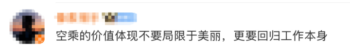 网友建议女性乘务员不再“服美役”记者注意到,近一年来,特别是今年7月份,多名网友在网上晒出在乘坐飞机、列车时,给乘务员着装建议的帖子。越来越多的人希望女性乘务员不再“服美役”(指女性为迎合社会审美标准而进行的外貌修饰行为,涵盖化妆、医美、节食减肥等),相关帖子点赞、转发和评论量都很高。