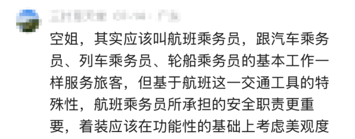 随着大众对服务行业关注度越来越高,诸如乘务员不用再穿高跟鞋、能自选衣服款式等改变,都说明行业理念在进步,把安全、效率和舒适当成服务的根本。